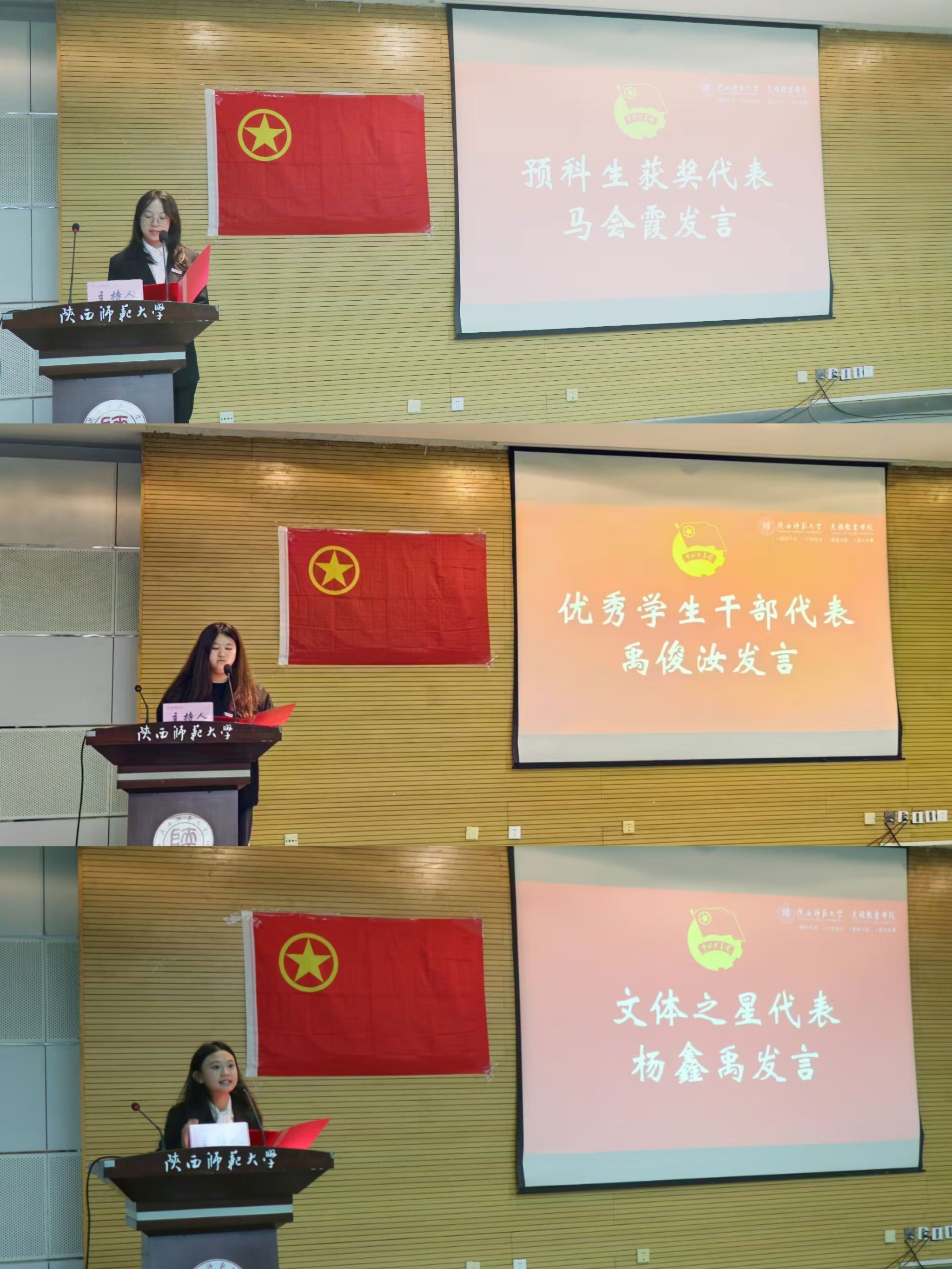 优秀员工代表马会霞、优秀员工干部代表禹俊汝、文体之星代表杨鑫禹同学依次上台发言。他们的发言从不同维度生动诠释了民教学子积极进取、追求卓越的精神风貌,为广大同学树立了榜样,激励着更多学子在新时代新征程中,不断努力,逐梦而行。