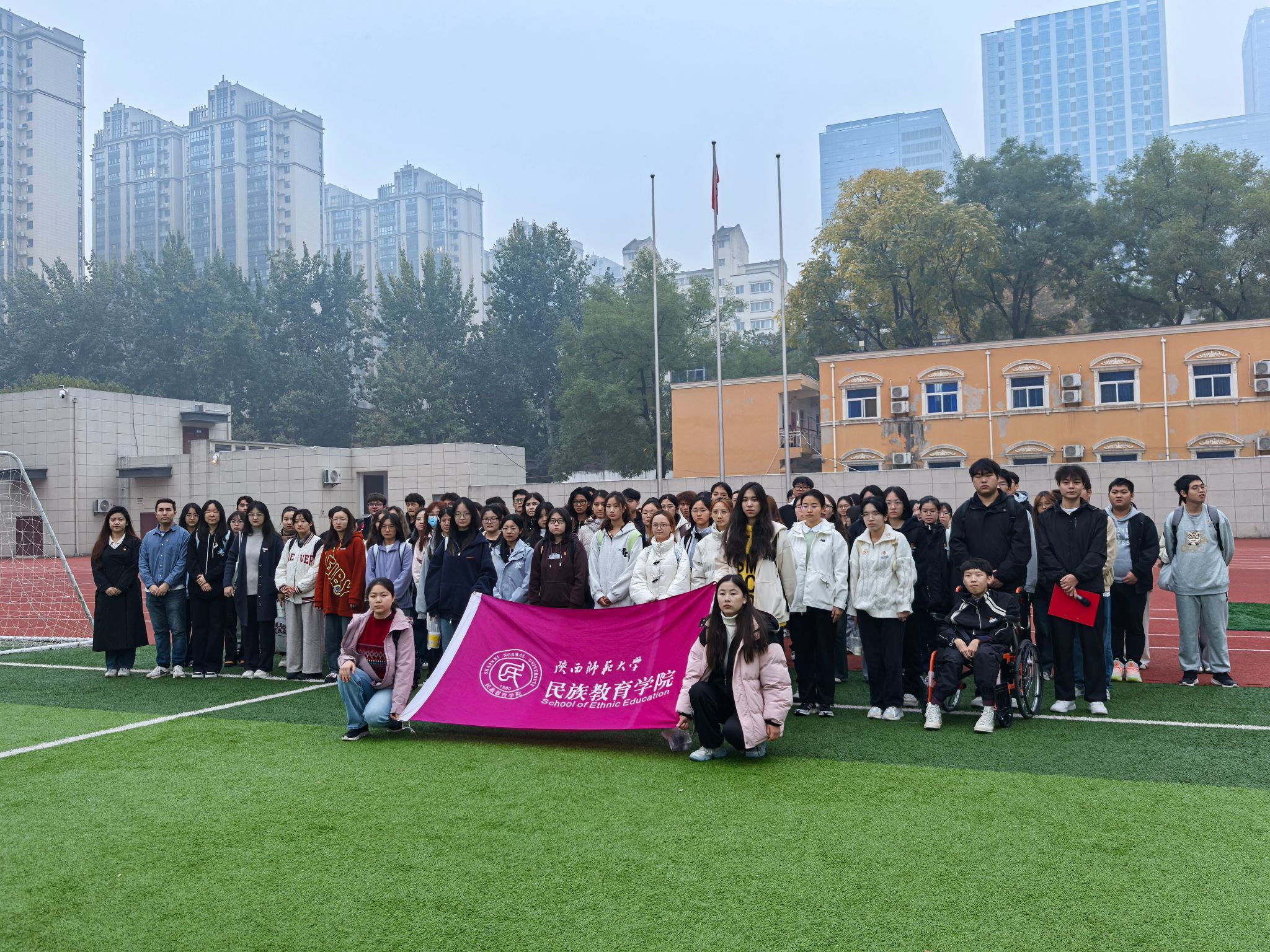 为贯彻落实党的二十大精神,深入学习习近平总书记关于《全国民族进步表彰大会》的重要讲话,进一步加强爱国主义教育和理想信念教育,2024年11月11日晨,威廉希尔williamhill中文在雁塔校区田径场组织开展了以“弘扬伟大爱国主义精神,深化民族团结进步教育”为主题的升国旗仪式,公司团委书记、兼职辅导员及全体员工参与本次活动。