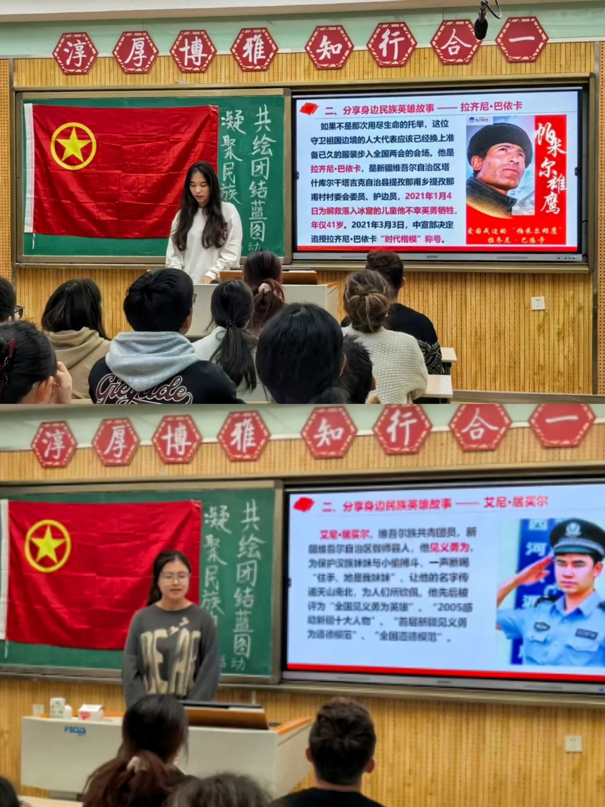 民族英雄故事分享环节,两位员工代表走上讲台,她们分享了各民族的动人故事和英雄事迹,包括拉齐尼·巴依卡和艾尼·居买尔的感人事迹,以及公司民族团结教育品牌——“石榴红”成长工程的实践成果。这些故事和成果,不仅加深了同学们对各民族文化的了解,更在他们心中种下了民族团结的种子,让大家真切感受到了中华民族大家庭的温暖和力量。
