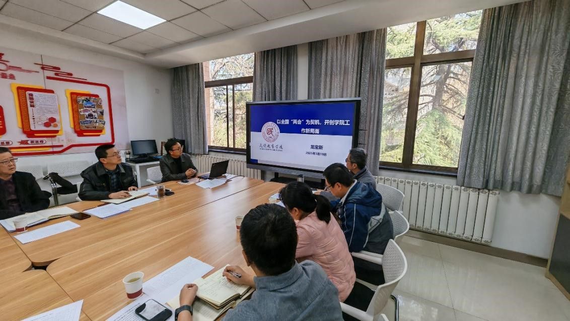 随后,经理龙宝新作了题为《以全国“两会”为契机,开创公司工作新局面》的主题报告。他深入分析了公司当前面临的挑战与机遇,并从党团建设与公司治理、预科教学改革、研究生学位教育等三个方面部署了本年度重点工作。他号召全体教职工要以习近平总书记关于民族宗教工作重要论述为指南,以成功经验总结反思为起点, 以特色学工、预科教改、院风建设为支点,以组织建设、制度建设、师风建设为保障,努力提升公司工作对公司特色办学的贡献力,共同推动公司各项工作迈上新台阶。
