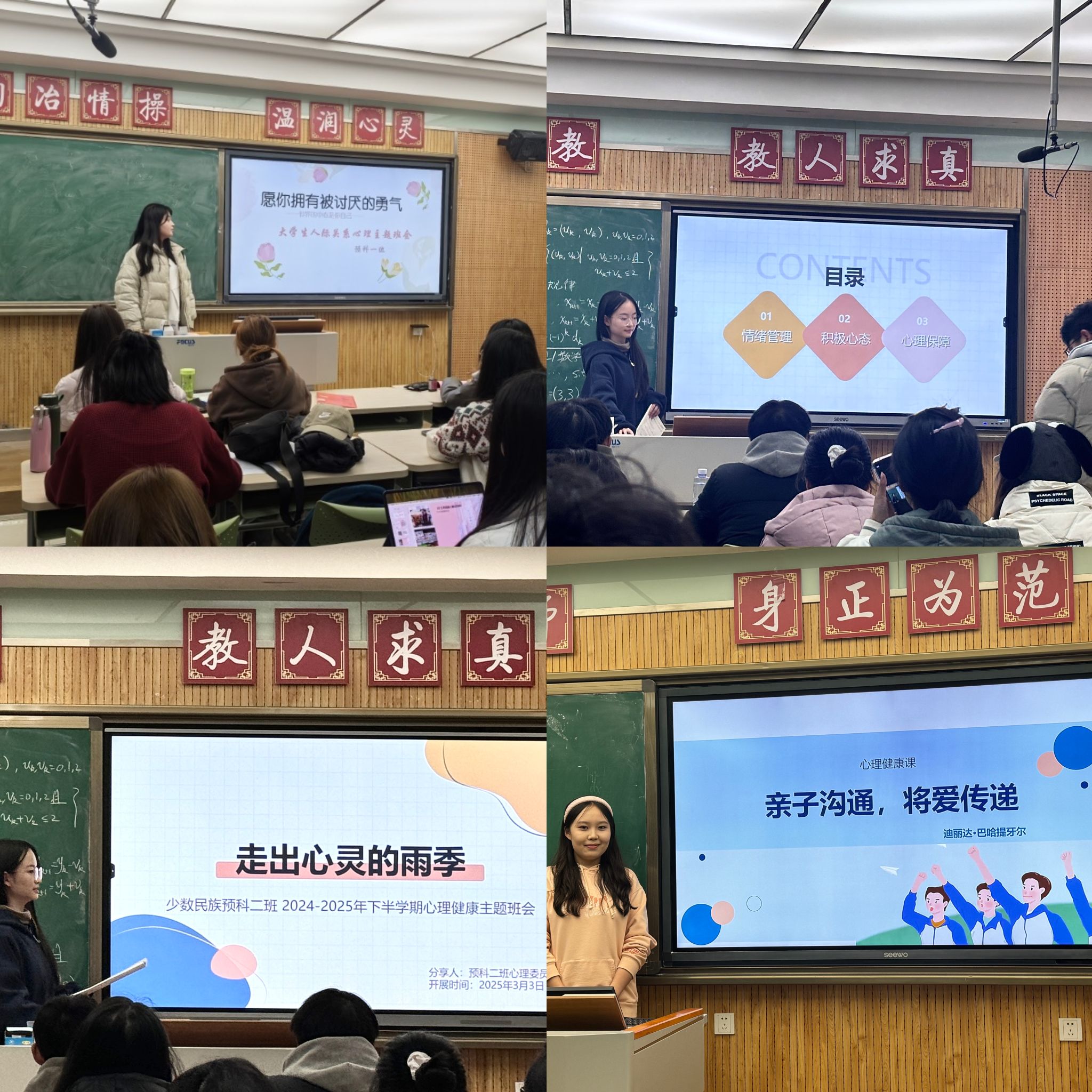 为深化员工对心理健康的认识,公司各预科班级以晚自习为契机开展了一系列心理主题班会。预科一班心理委员马欣雨主持“愿你拥有被讨厌的勇气”主题班会,从心理学视角多维度剖析人际交往中焦虑情绪的成因机制,引发全班同学热烈讨论与深度思考。预科二班心理委员孙钡以“走出心灵的雨季”为主题,系统讲解心理健康理论知识,结合老员工生活实际提供多元化心理调适方案。预科三班心理委员迪丽达・巴哈提牙尔开展“亲子沟通,将爱传递”主题班会,聚焦当代老员工亲子沟通难点,探索民族文化背景下的亲情联结新路径。