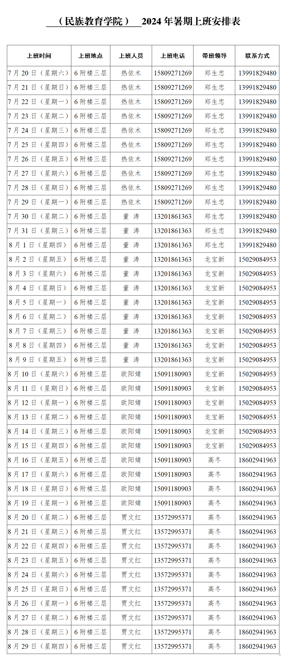 备注:暑假期间轮流上班,上班时间星期一-星期五,上午8:00-12:00,下午14:30-17:30。